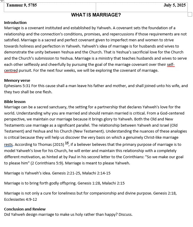 The outline for the Sabbath Day message on 07/05/25, “Sharing“, can be found at http://bible.com/events/49458983 . The Scriptures & Tea (Sabbath School) lesson for this day, can be found below: