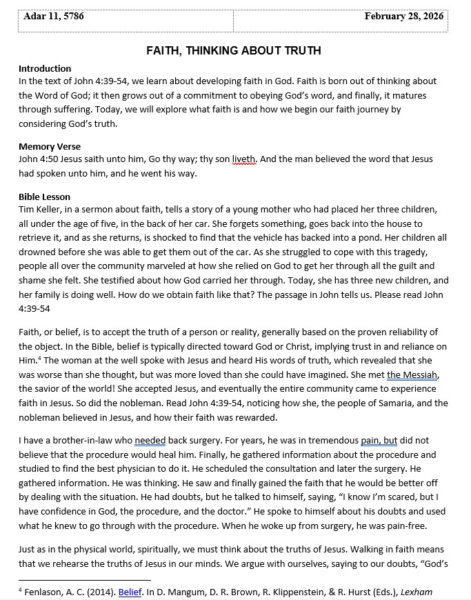 The outline for the Sabbath Day message on 02/28/26, “Remember People“, can be found at http://bible.com/events/49571712 . Below is our Sabbath School lesson for today!